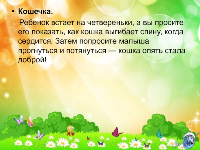 спину, когда сердится. Затем попросите малыша прогнуться и потянуться — кошка опять стала доброй!