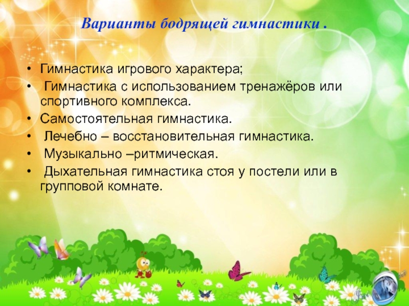 Слайд 6Варианты бодрящей гимнастики .