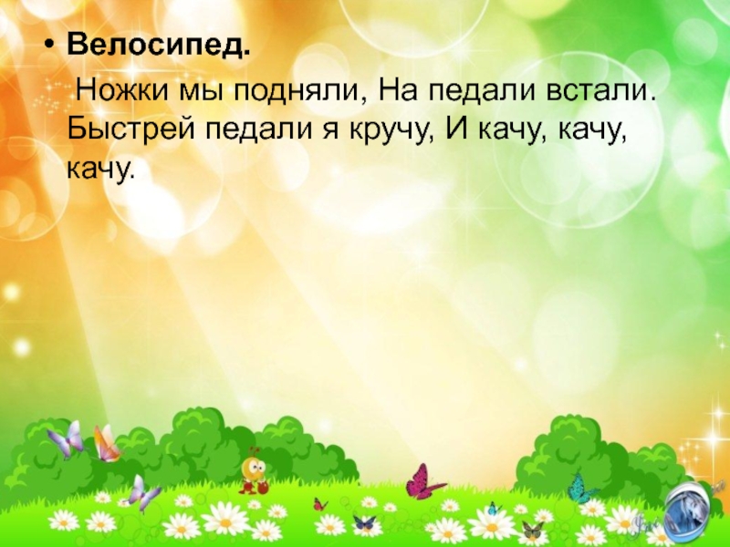 Быстрей педали я кручу, И качу, качу, качу.