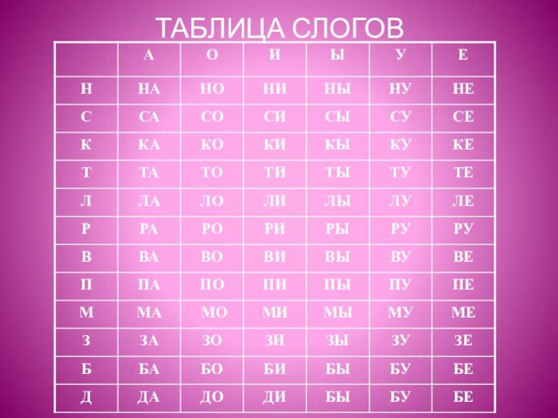 Слайд 3ТАБЛИЦА СЛОГОВ