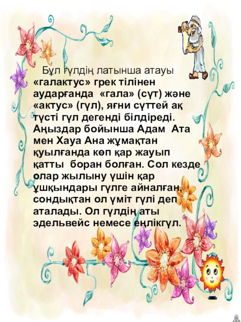 Слайд 7 Бұл гүлдің латынша атауы «галактус» грек