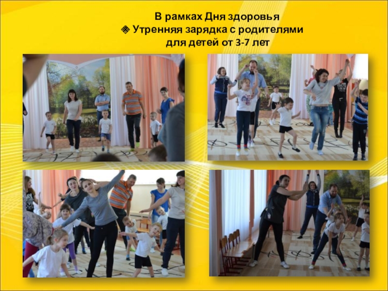 - утренняя гимнастика ( с мая-сентябрь на свежем воздухе);