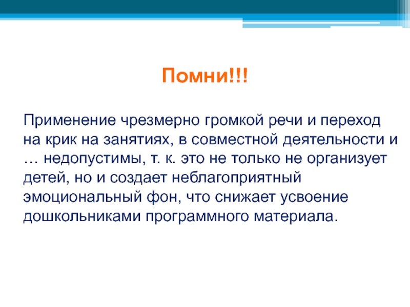 не злоупотреблять повышенным тоном, подбирать интонацию адекватно педагогической ситуации;