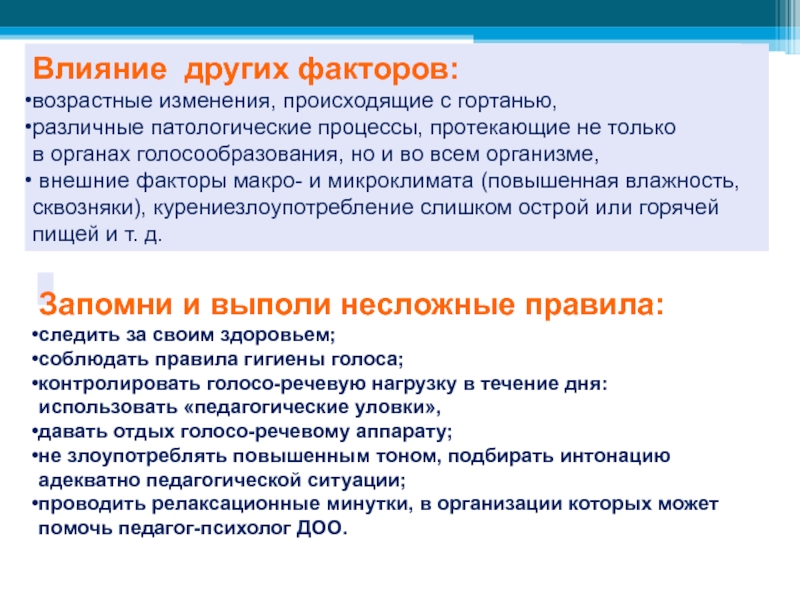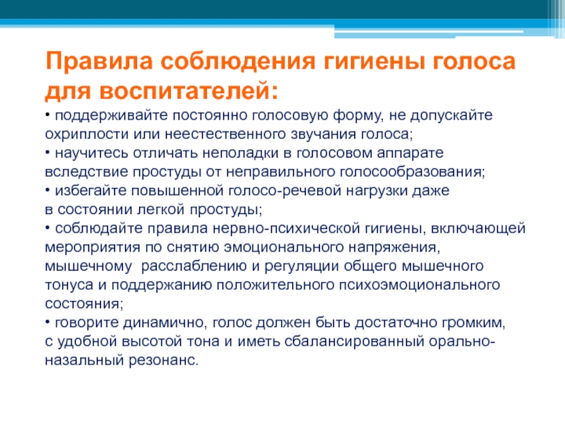 соблюдать правила гигиены голоса;