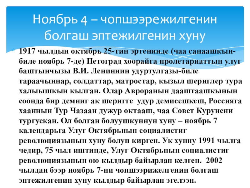 Ноябрь 4 – чопшээрежилгенин болгаш эптежилгенин хуну