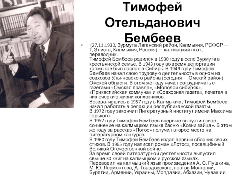 Калмыкия, Россия) — калмыцкий поэт, переводчик.