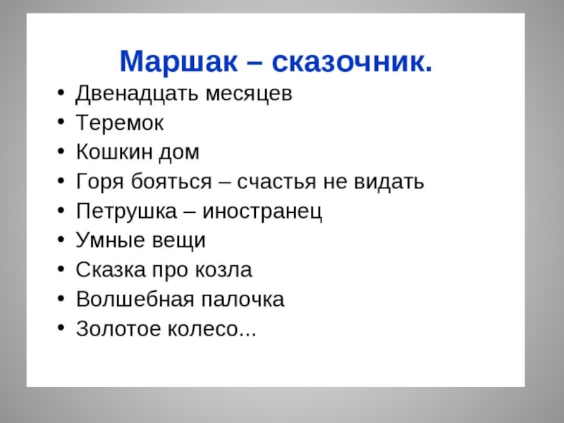 Слайд 25Какие сказки написал С. Я. Маршак для детей?