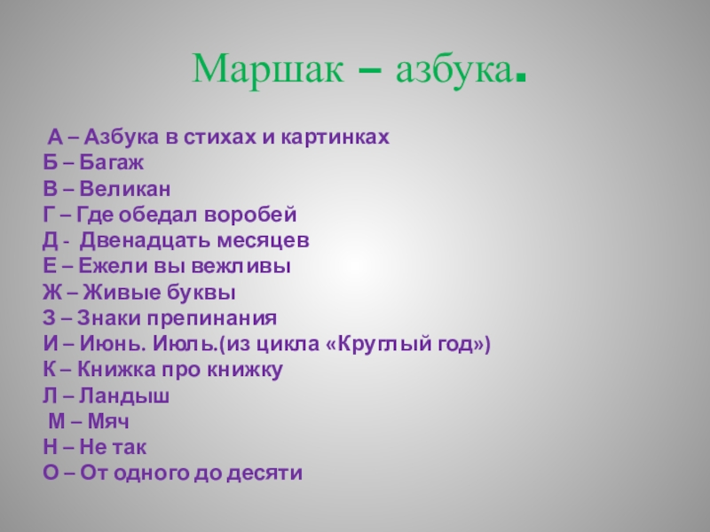 Слайд 43 Маршак – азбука.