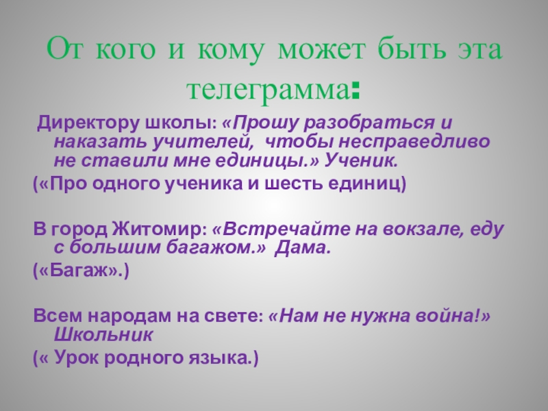 От кого и кому может быть эта телеграмма: