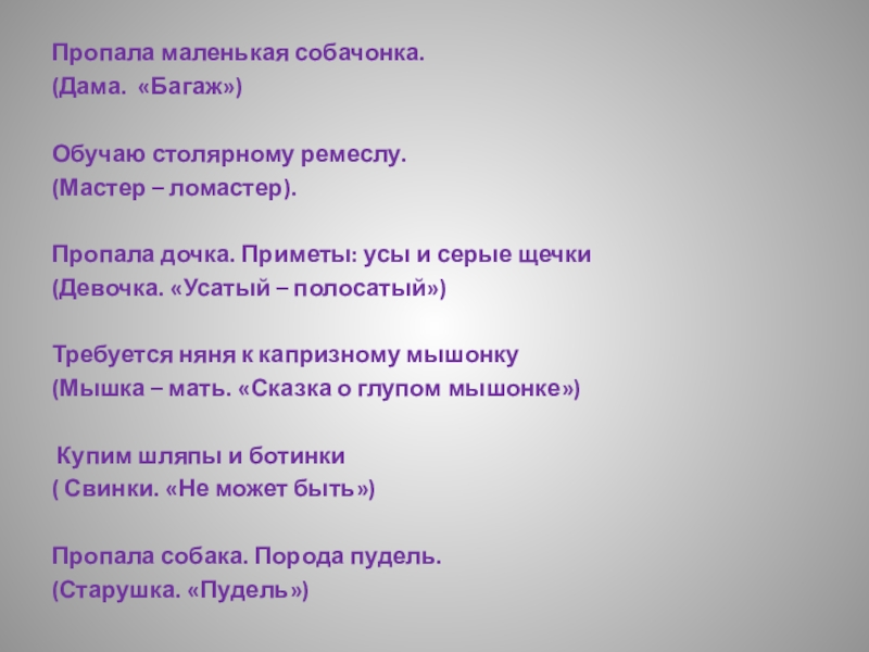 Слайд 46Пропала маленькая собачонка.