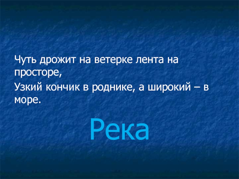 Чуть дрожит на ветерке лента на просторе,Узкий кончик в роднике, а широкий – в море.Река