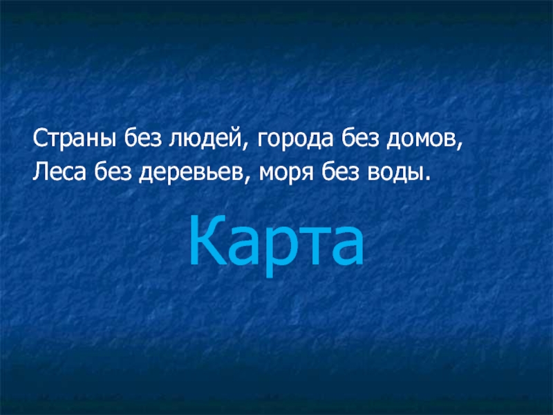 Страны без людей, города без домов,Леса без деревьев, моря без воды.Карта