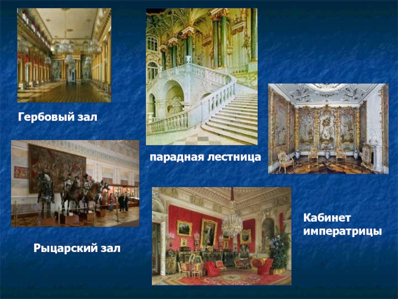 Гербовый залпарадная лестницаРыцарский залКабинет императрицы