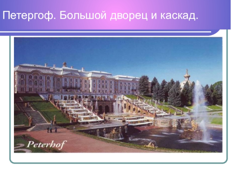 Слайд 15Петергоф. Большой дворец и каскад.