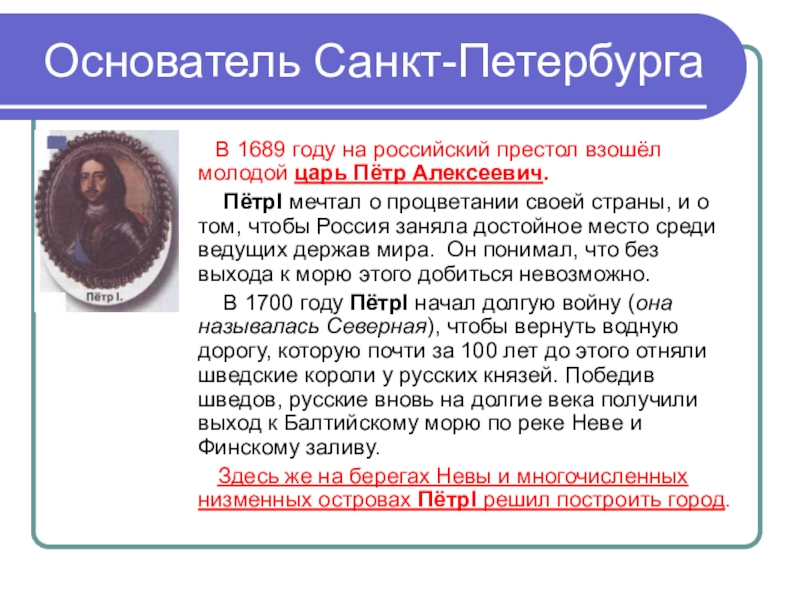 Слайд 7 Основатель Санкт-Петербурга