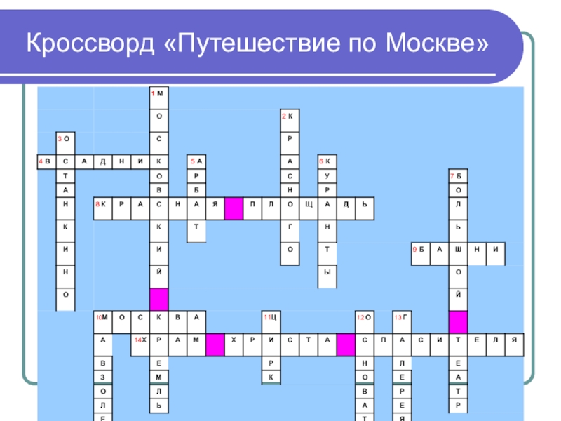 Слайд 2Кроссворд «Путешествие по Москве»