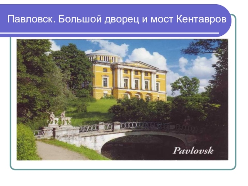 Слайд 17Павловск. Большой дворец и мост Кентавров