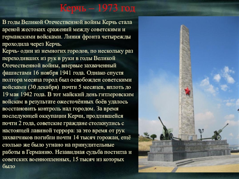 С 30 октября 1941 по 4 июля 1942 гг. защитники города держали героическую оборону.. После оставления города советскими властями, фашисты жестоко отыгрались на мирных жителях, уничтожив около 30 тысяч горожан за время управления городом.