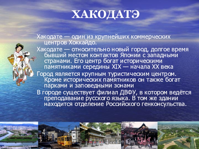 долгое время бывший местом контактов Японии с западными странами. Его центр богат историческими памятниками середины XIX — начала XX века