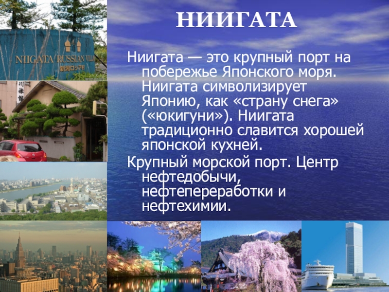Ниигата — это крупный порт на побережье Японского моря. Ниигата символизирует Японию, как