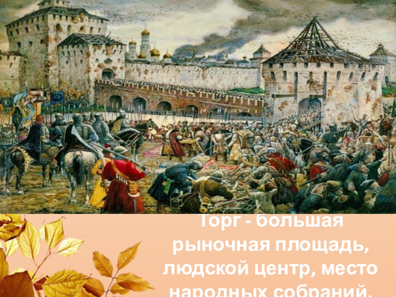 Слайд 8Торг - большая рыночная площадь, людской центр, место народных собраний.
