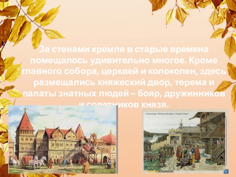 Слайд 6За стенами кремля в старые времена помещалось удивительно многое. Кроме главного