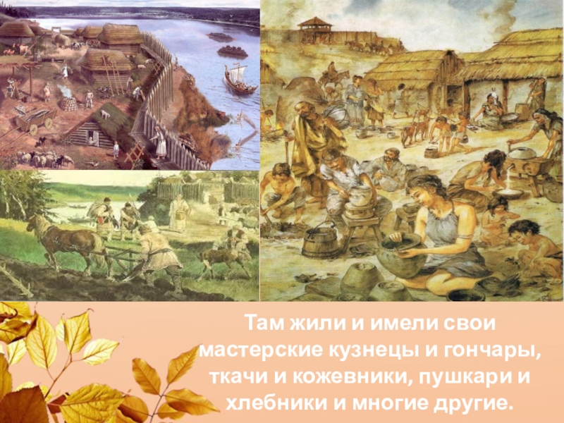 Слайд 10Там жили и имели свои мастерские кузнецы и гончары, ткачи и