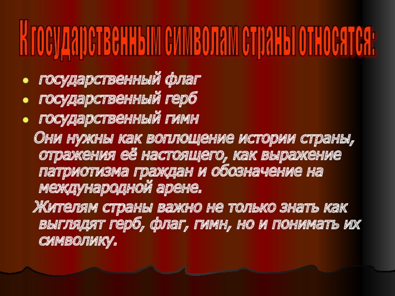 К государственным символам страны относятся: