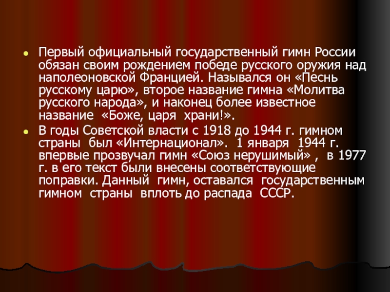 Гимн - символ страны.