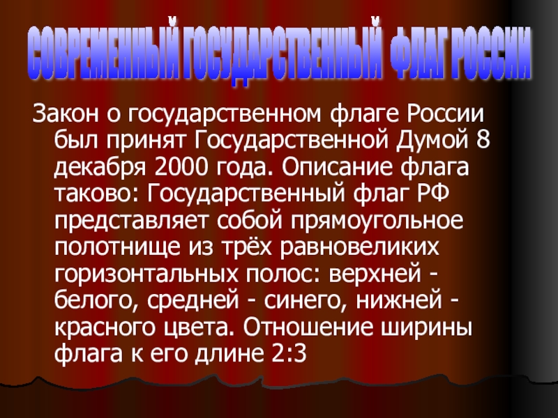 СОВРЕМЕННЫЙ ГОСУДАРСТВЕННЫЙ ФЛАГ РОССИИ