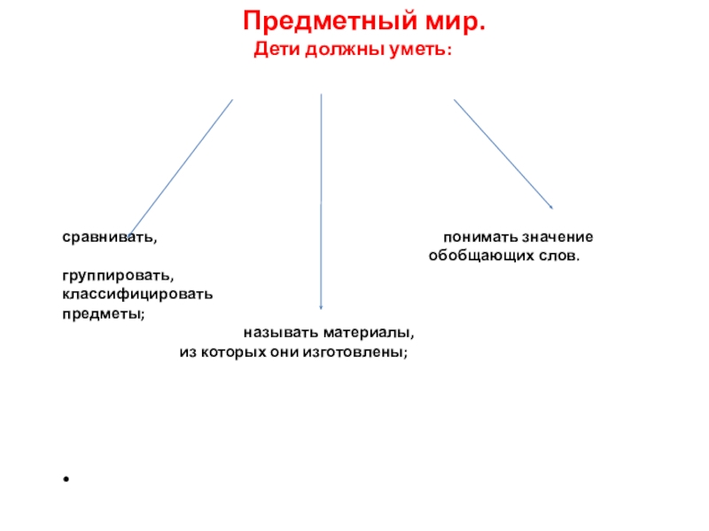 Уметь объединять предметы в группы: мебель, транспорт, одежда, обувь, растения, животные и т. д. Уметь