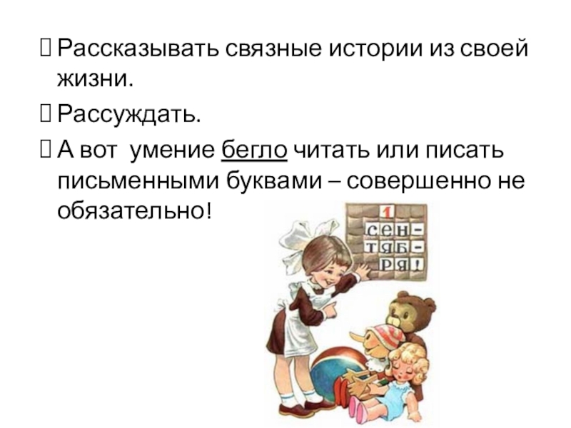 А вот умение бегло читать или