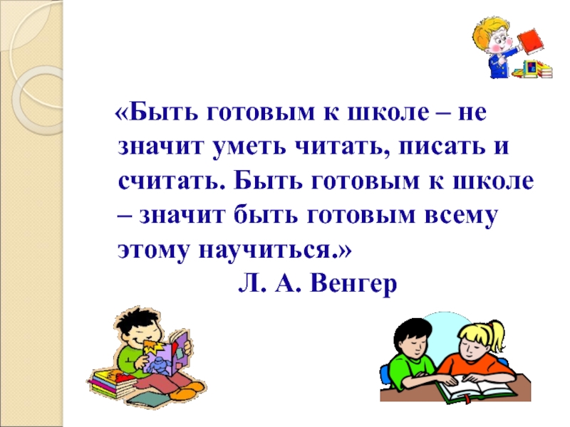 и считать. Быть готовым к школе – значит быть готовым всему этому научиться.»