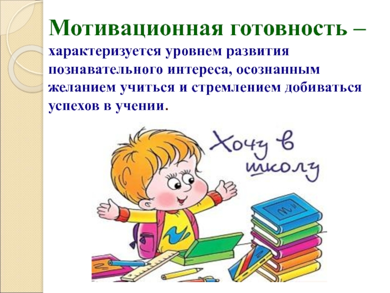 характеризуется уровнем развития познавательного интереса, осознанным желанием учиться