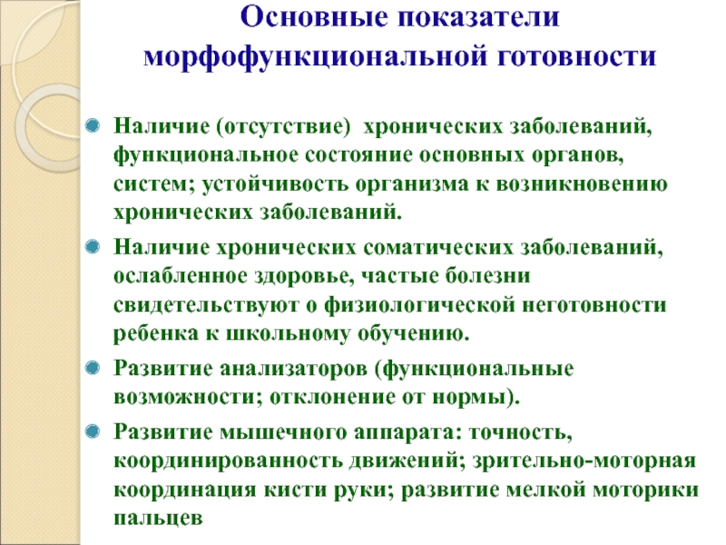 Слайд 4Морфофункциональная готовность ребенка к школе