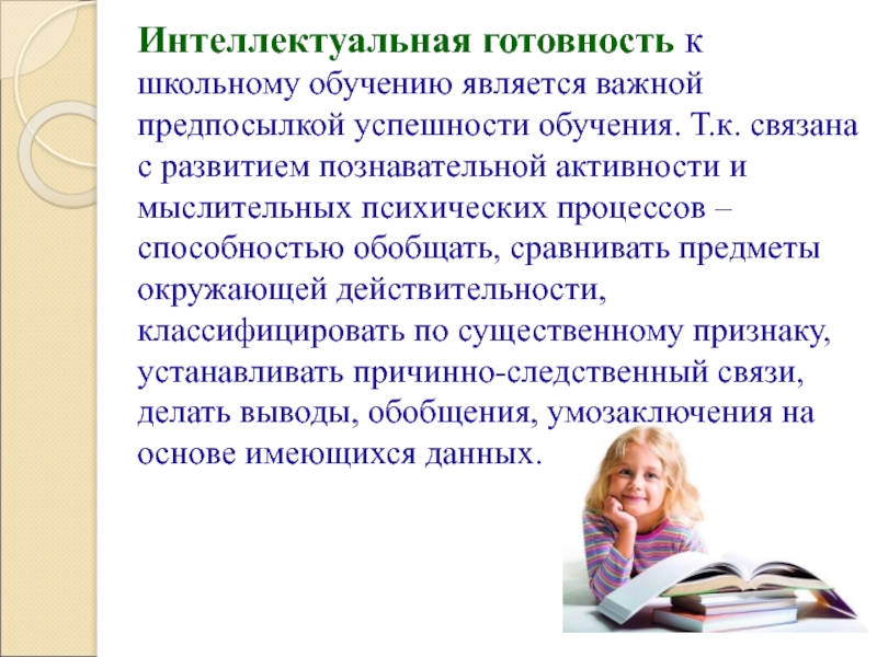 Интеллектуальная готовность к школьному обучению является важной предпосылкой успешности обучения. Т.к.