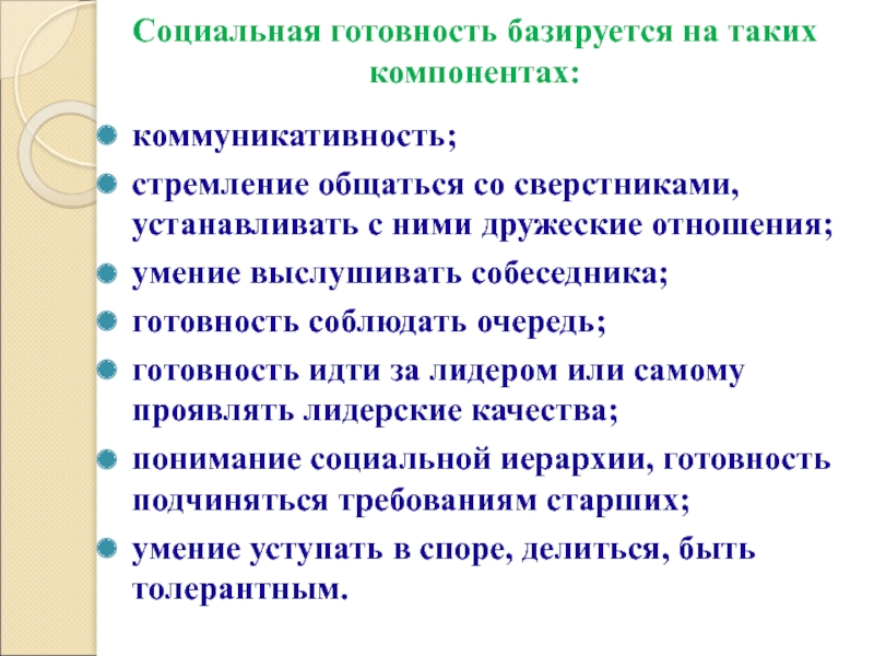 Слайд 17Социальная готовность базируется на таких компонентах: