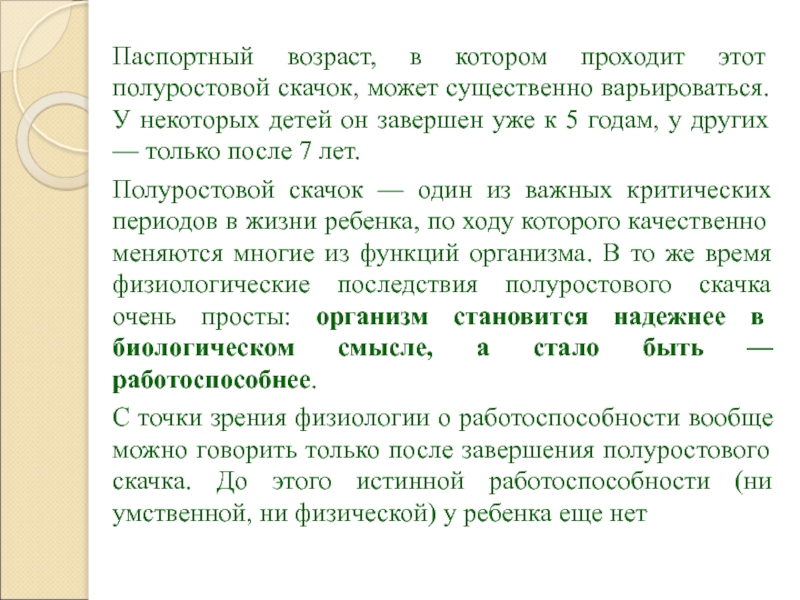 Паспортный возраст, в котором проходит этот полуростовой скачок, может существенно варьироваться.