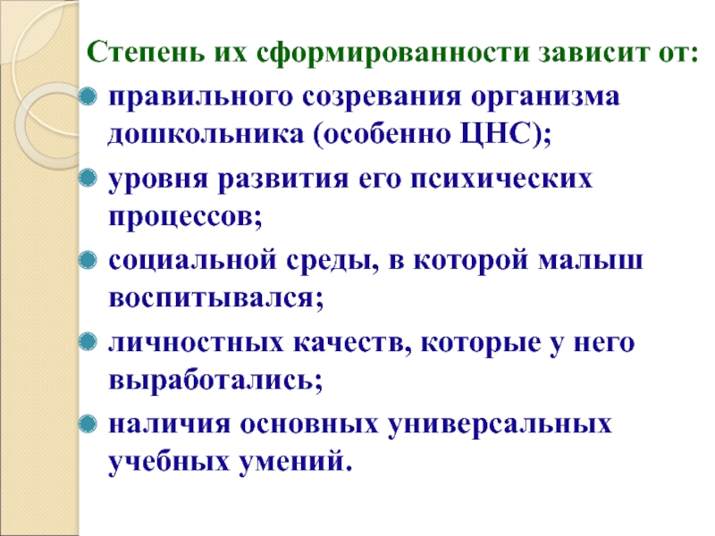 Психологическая готовность формируется у ребенка на протяжении всего дошкольного детства, и