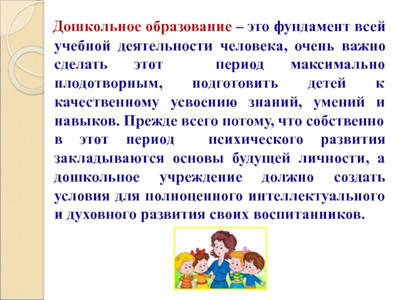 Дошкольное образование – это фундамент всей учебной деятельности человека,