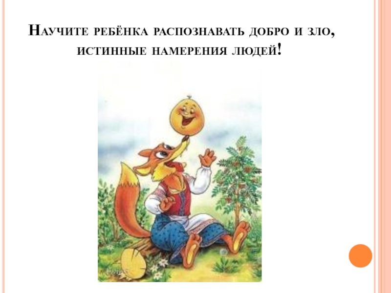 Слайд 19Научите ребёнка распознавать добро и зло, истинные намерения людей!