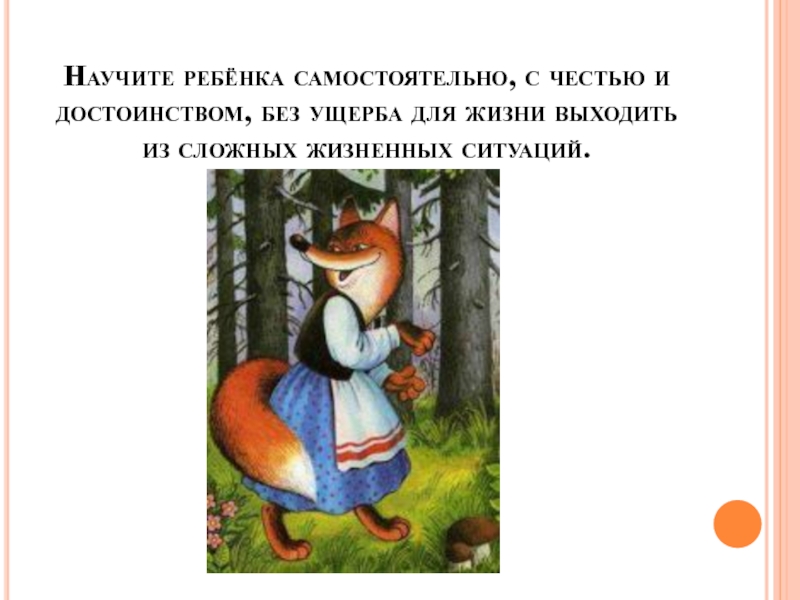 Слайд 20Научите ребёнка самостоятельно, с честью и достоинством, без ущерба для жизни