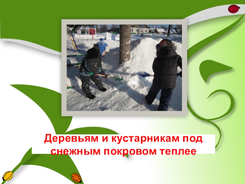 Слайд 18Деревьям и кустарникам под снежным покровом теплее