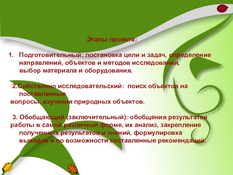 Подготовительный: постановка цели и задач, определение направлений, объектов и методов