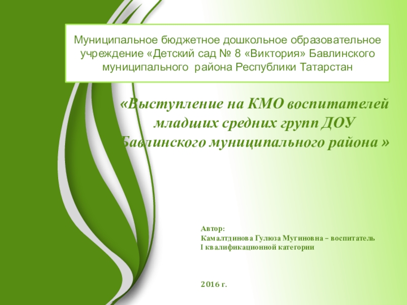 Слайд 1«Выступление на КМО воспитателей младших средних групп ДОУ Бавлинского муниципального района
