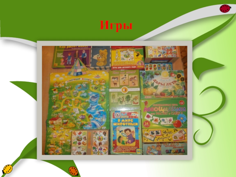 Экологические знаки ( вода, солнце, ветер, дождь, насекомые), рисунки, смех, макеты природных объектов, кормушка, дидактические экологические игры, фонетика дисков с познавательным материалом (голоса птиц).