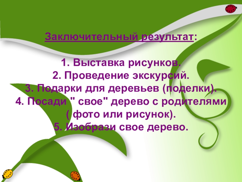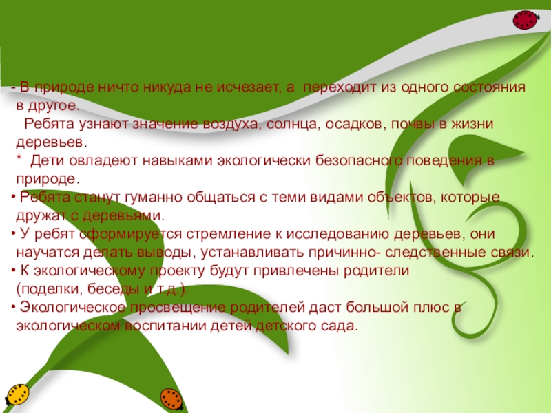 У ребят сформируется стремление к исследованию деревьев, они научатся делать выводы, устанавливать причинно- следственные связи.