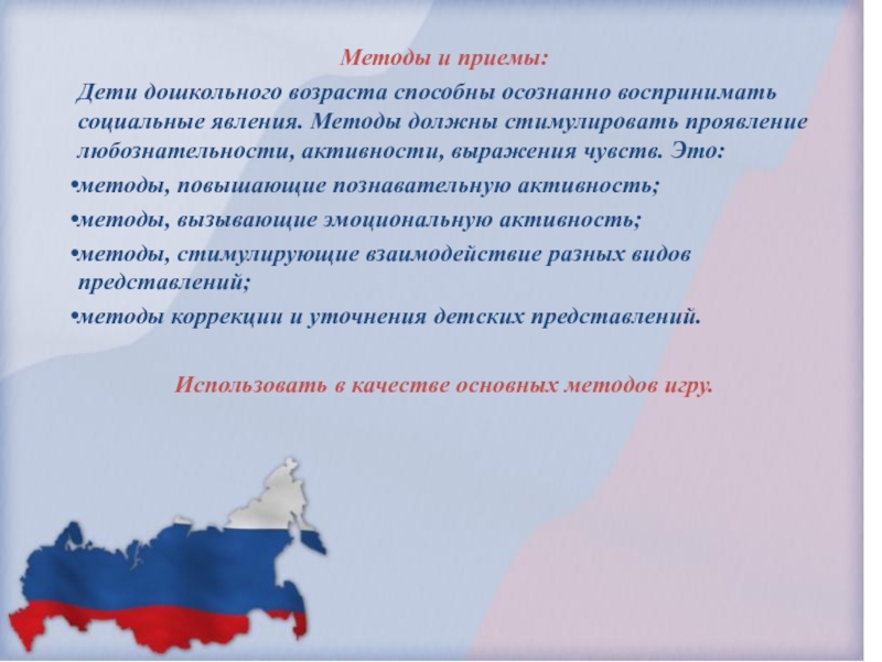 Дети дошкольного возраста способны осознанно воспринимать социальные явления. Методы