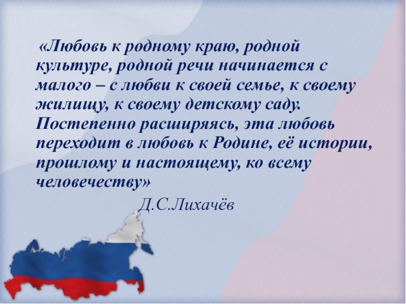 Слайд 2 «Любовь к родному краю, родной культуре, родной речи начинается с