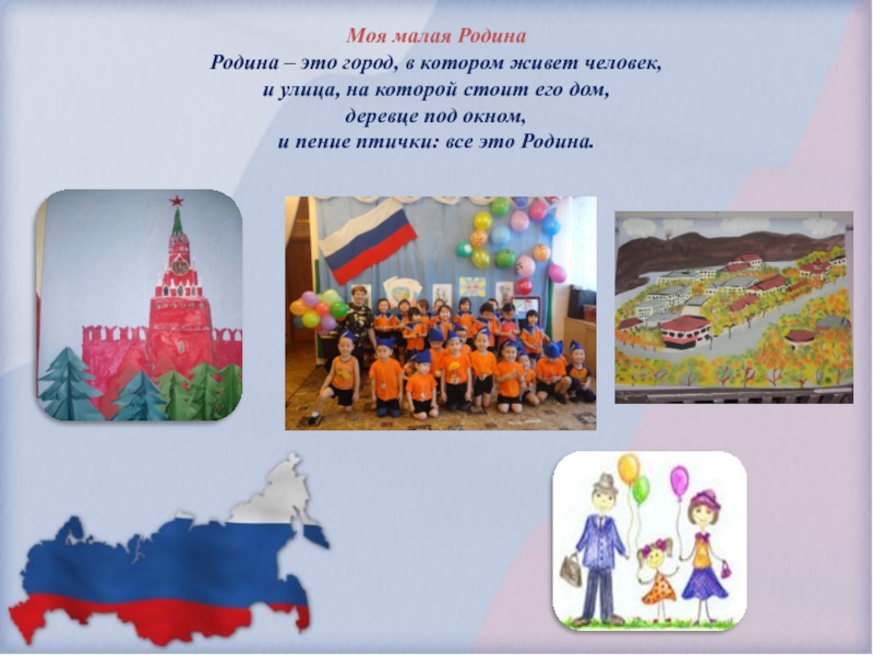 малого – с любви к своей семье, к своему жилищу, к своему детскому саду. Постепенно расширяясь, эта любовь переходит в любовь к Родине, её истории, прошлому и настоящему, ко всему человечеству»